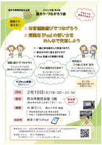 語ろう・つながろう会(2月10日)のお知らせ 新着情報 2026.01.14 2025度第4回目の「語ろう・つながろう会」を以下の日程で開催します。 どなたでも参加できます。お気軽にお越しください! 日時:2月10日(火)18:30~20:30場所:熊本県教育会館 5階ホール(熊本市中央区九品寺1丁目11-4)テーマ:体育運動遊びでつながろう、授業用iPadの使い方を交流しよう持参物:授業で使うiPad 参加の申込は、お近くの組合員または申込フォームからお知らせください。